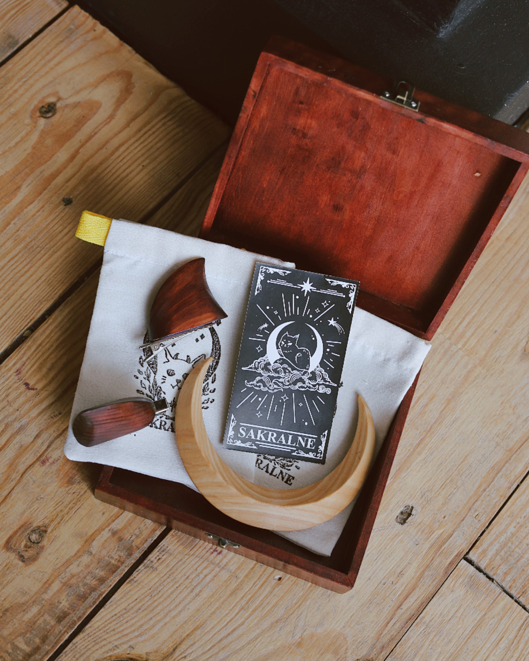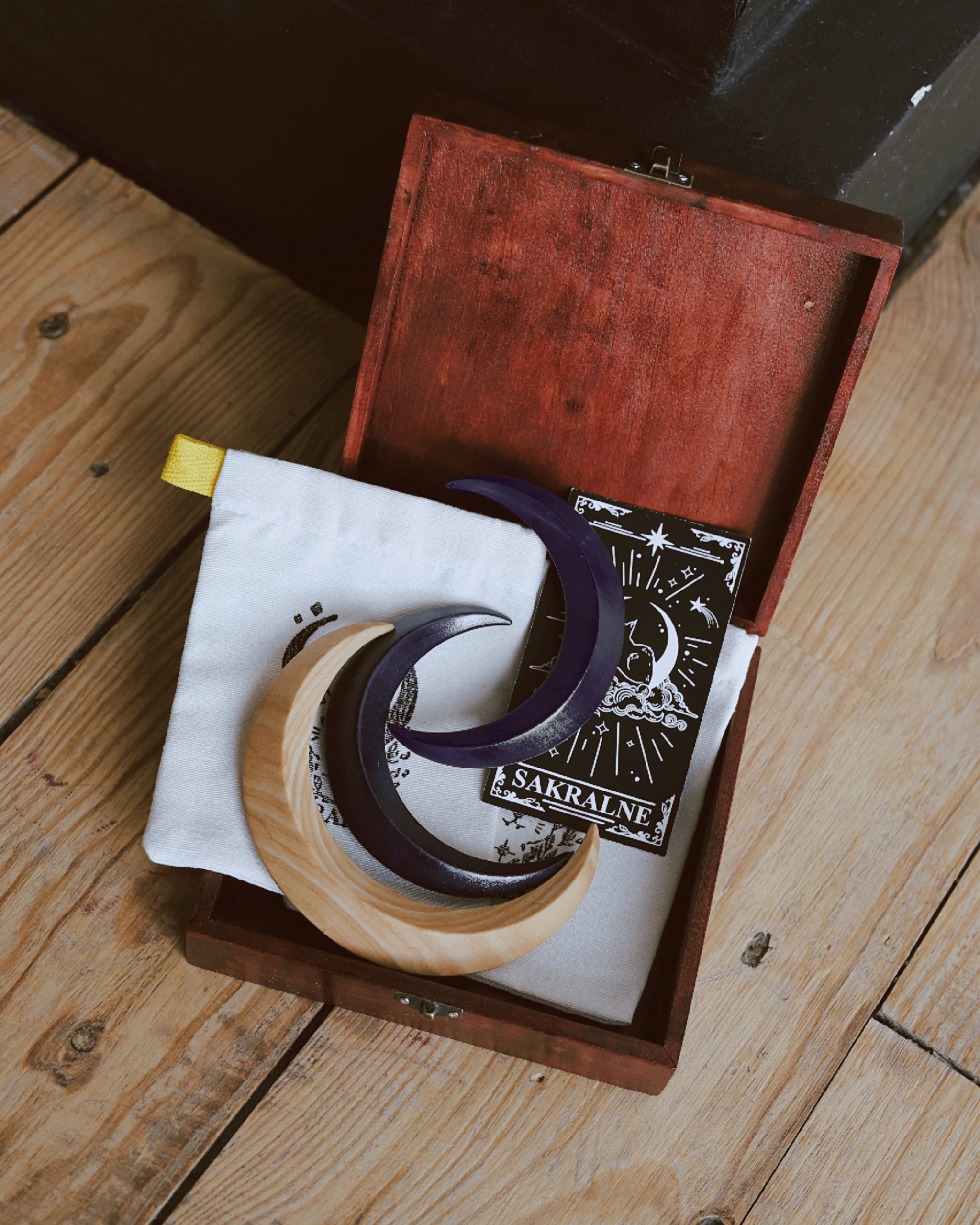 For storing hair accessories or small items.Medium moon hairpin made of ash wood