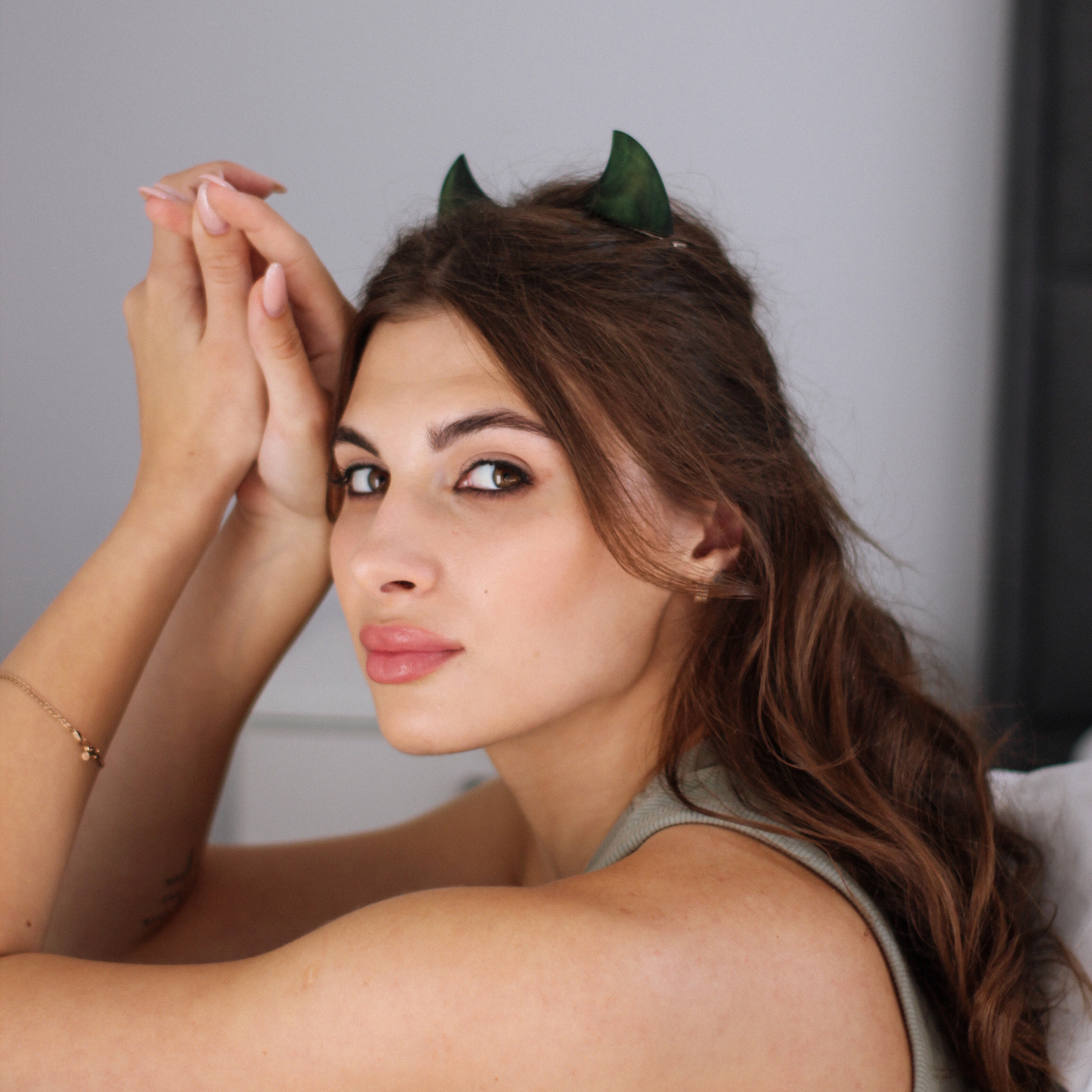 Green horns hair clips
