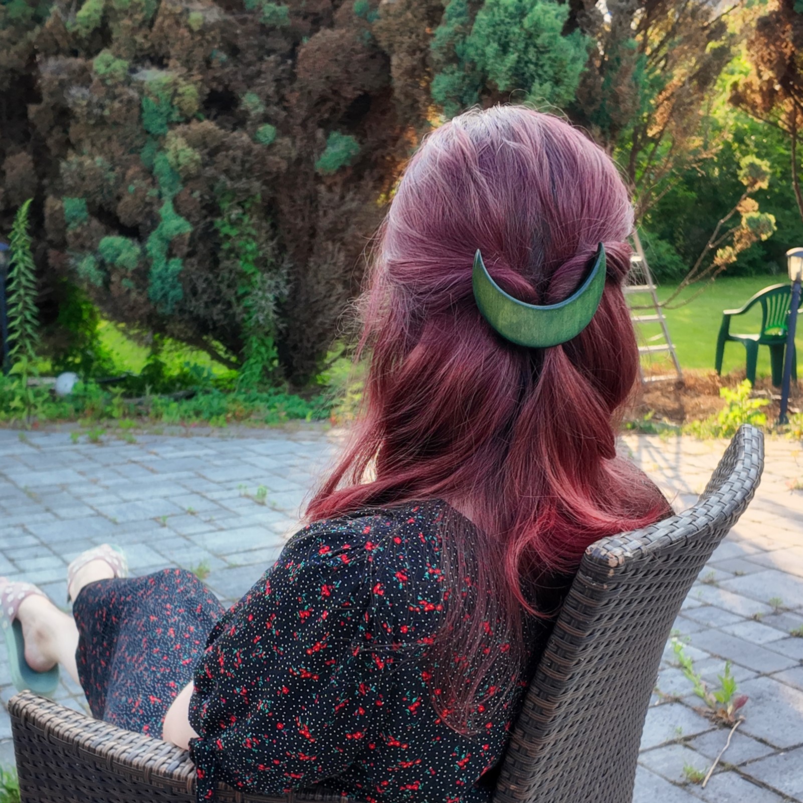 Green moon hair clip
