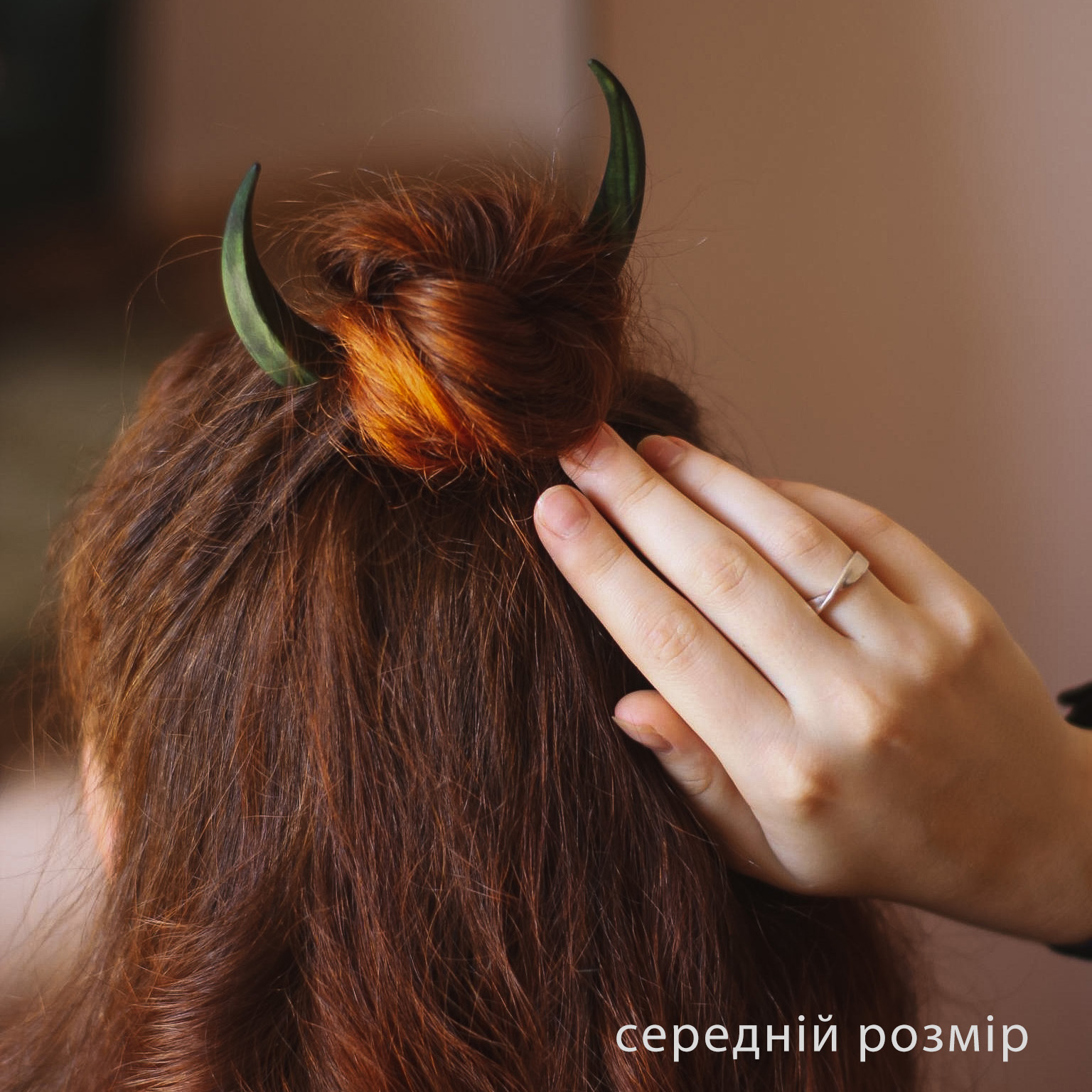 This gentle crescent-shaped hairpin is handcrafted from alder wood and dyed a deep green color. It’s not just an accessory — it’s a powerful talisman for those seeking harmony with themselves and the world.