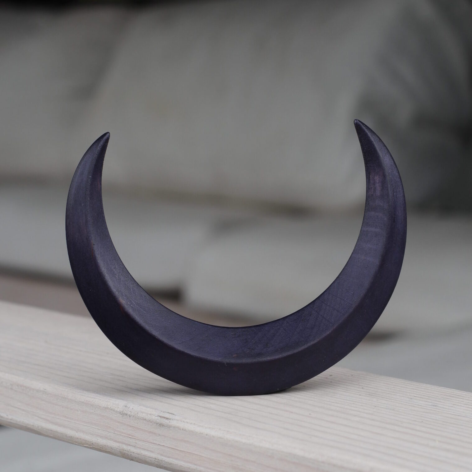 This crescent-shaped hairpin, handcrafted from alder wood and dyed in a deep indigo color, is not just an accessory but a potent talisman for those seeking to explore the depths of their consciousness.