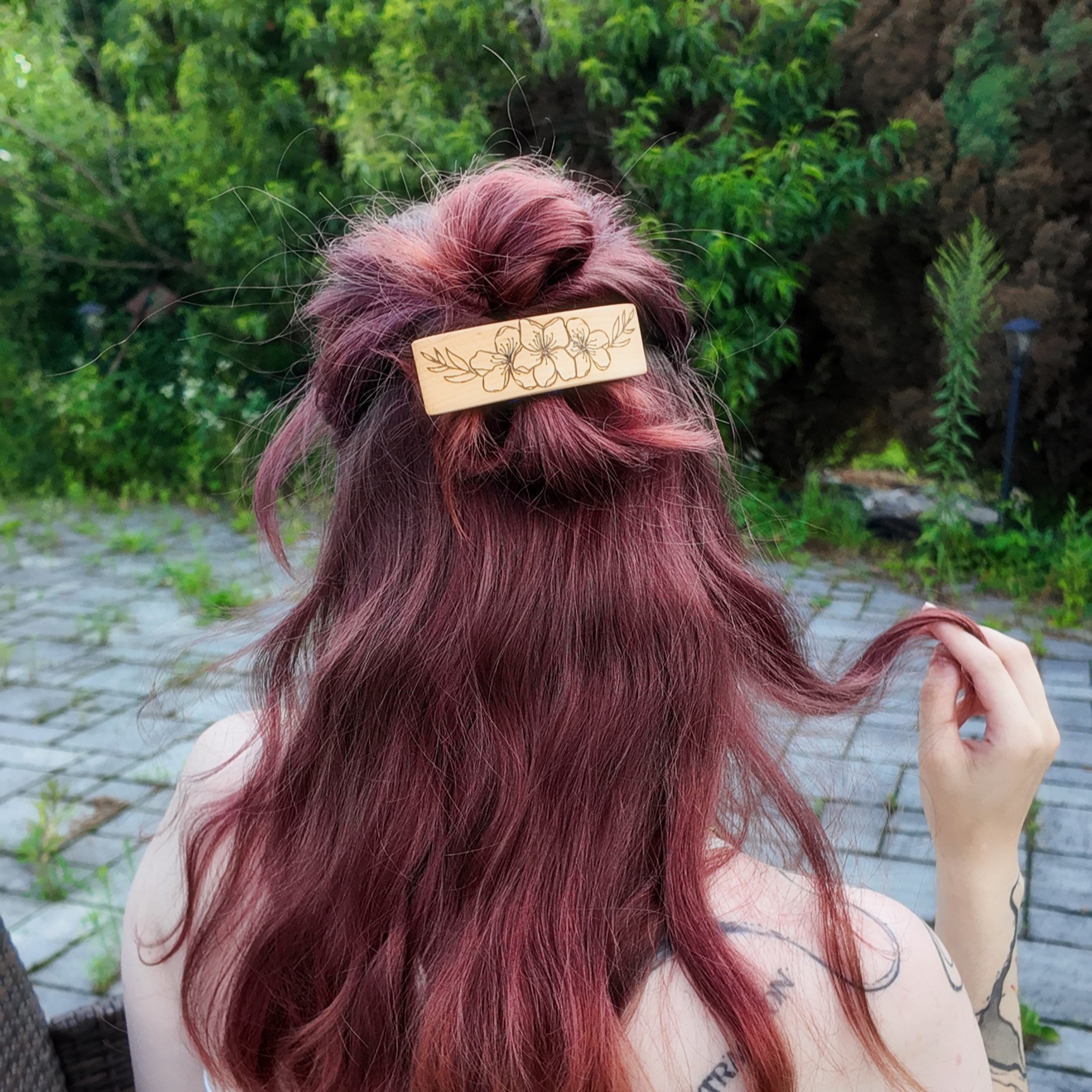 This hairpin is like a chocolate bar, only for your hair: smooth, wooden, so pleasant to the touch that you will want to stroke it, not just wear it. The size is 10×3 cm – perfect for taming unruly strands or just adding a little wooden magic to your look